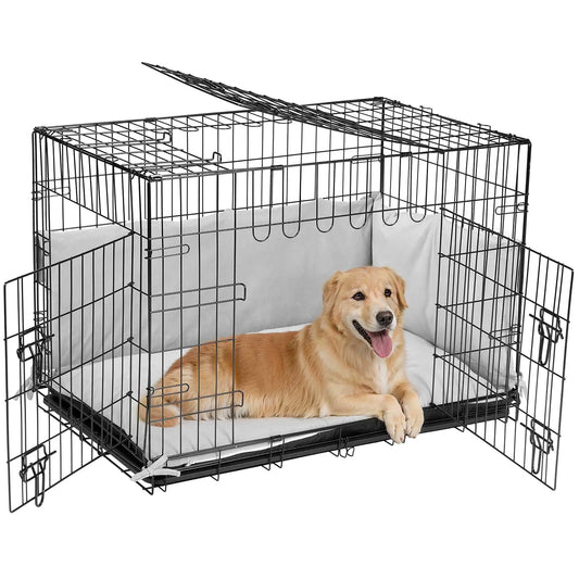 36 inch Metal Dog Crates for Large Dogs with Bumper-Three Doors Folding